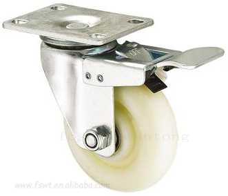 中型尼龍雙軸輪子(zǐ)旋轉刹(shā)車(刹製)腳輪 (支架3mm)